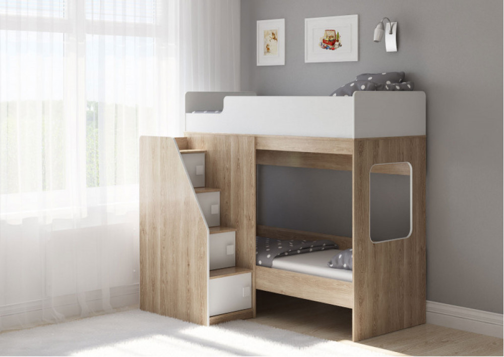 Двухъярусная кровать Легенда D603.3 - современный дизайн и необычное расположение угловой лестницы.